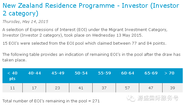 2015-05-15新西兰投资移民5月14日新一轮选取,15个意向书被选中