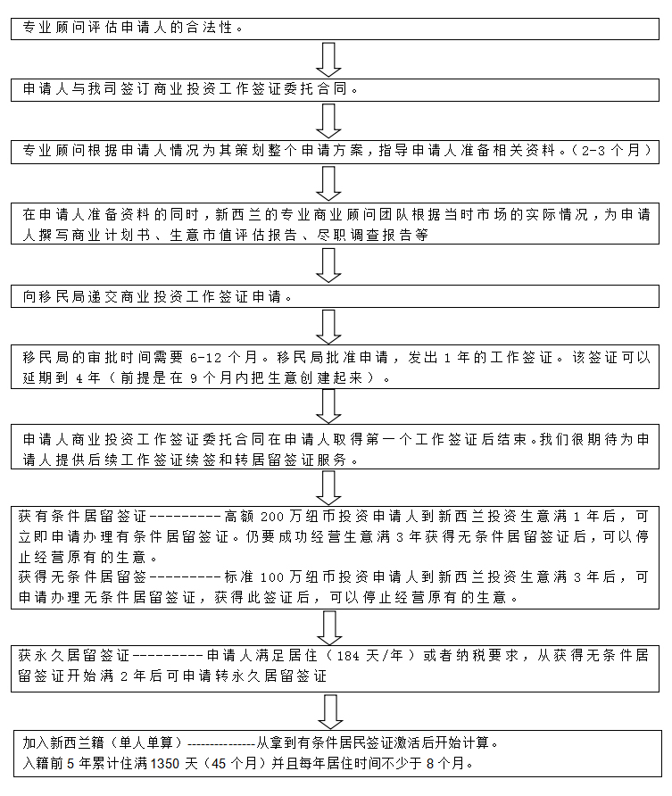 * 投资额100万纽币(约450万人民币,汇率1:4.5计算)或者200万纽币(约900万人民币);需要证明合法来源;高额投资200万纽币在经营满1年后就可以申请快速通道居民签证,但仍要成功经营生意满3年,否则居民签证仍会被取消;